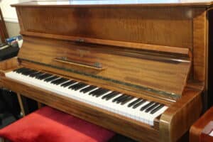 Ett renoverat Schimmel piano från 1978 i vacker satinerad valnöt.